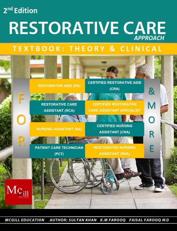 Demand for Restorative Aides and Restorative Care Assistants are increasing and non availability of all in one compiled resources for restorative care led to the publishing of the Restorative Care Textbook. Schools can now offer a program by the following titles using this book: Restorative Care Assistant, Restorative Nursing Assistant, and Restorative Aide.